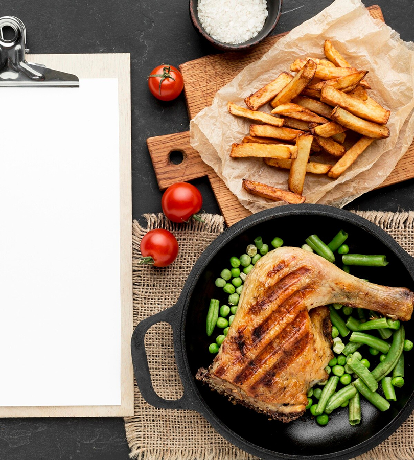 Tiras de pollo a la plancha, lechuga, tomate, cebolla y aderezo de mostaza.