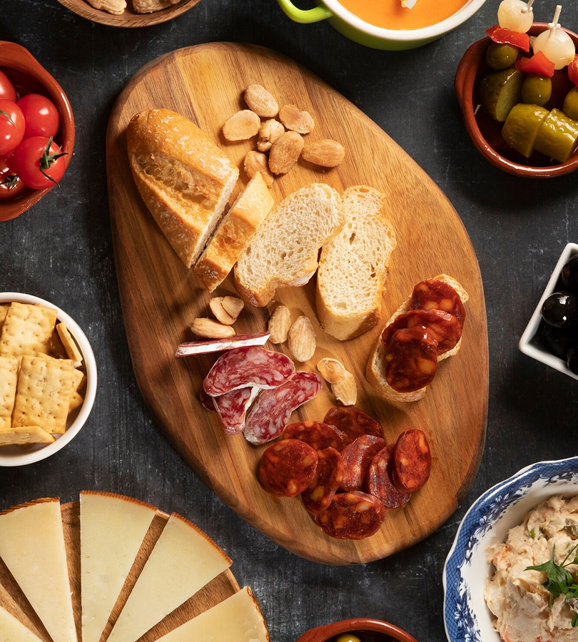 Jamón serrano y queso curado, servido en pan crujiente con un toque de aceite de oliva.