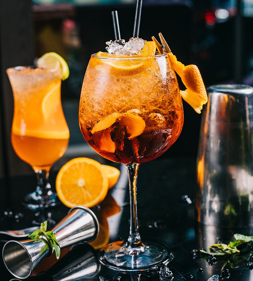 Ron, hierbabuena, lima, azúcar y soda, servido bien frío para refrescarte.